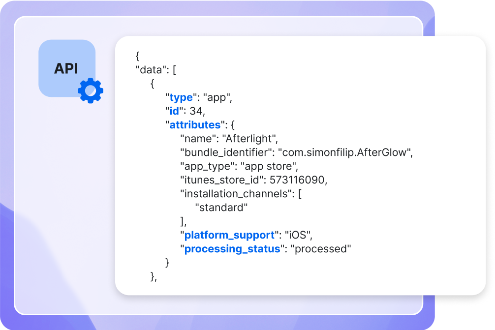 Automate your app distribution workflows via API to deploy, assign, and configure custom and App Store apps across all your devices.