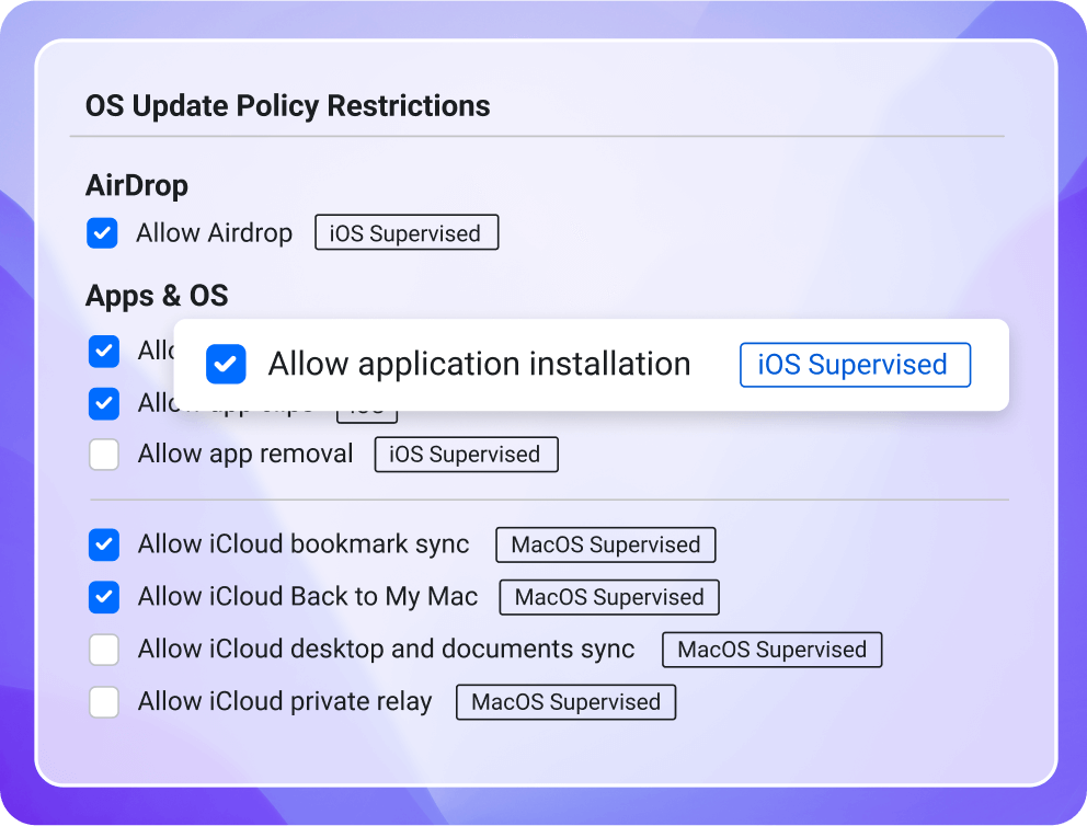Automatically deploy OS updates with ease. Push apps and installer packages to devices without ever having to interrupt end users.